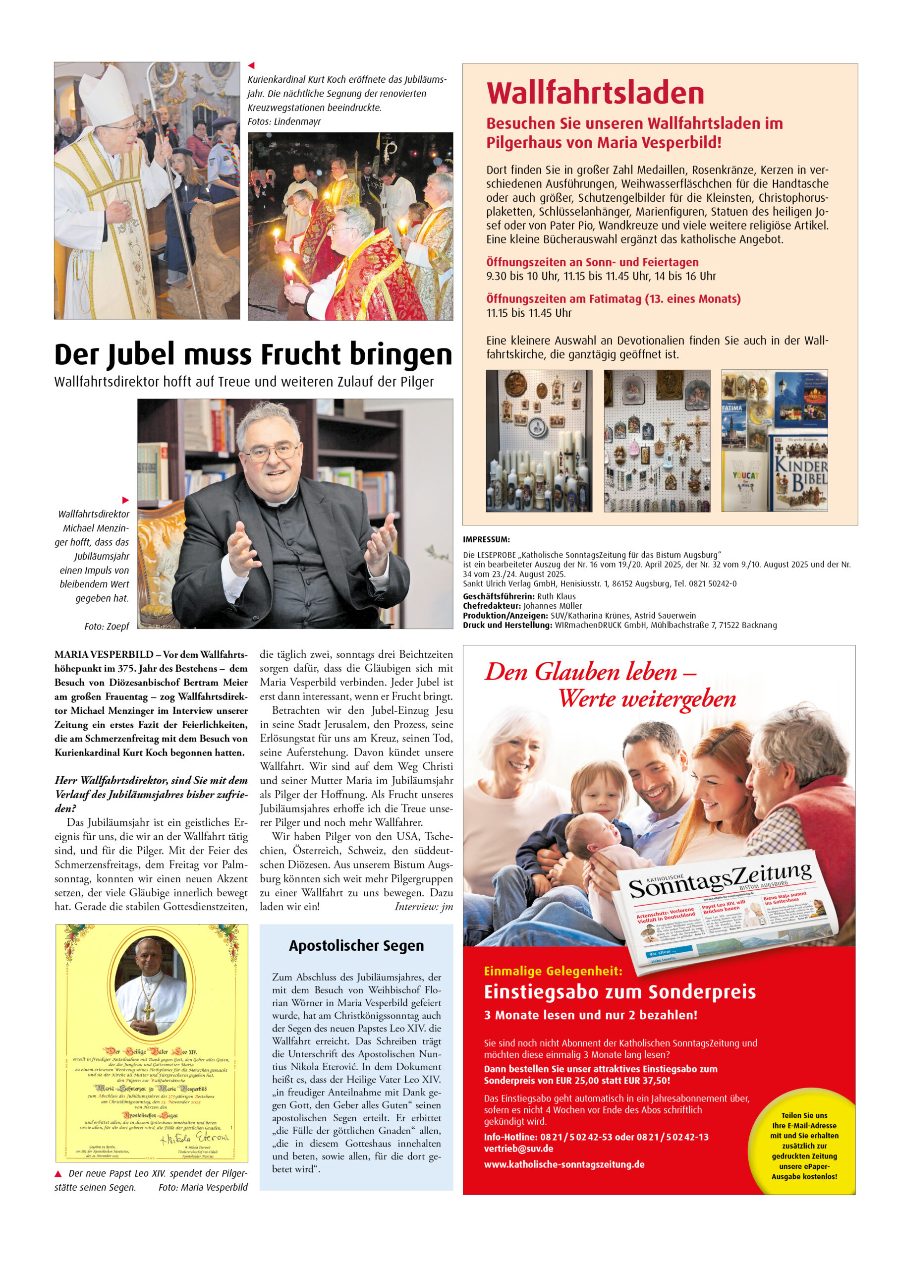 Maria Vesperbild von hoher volkskundlicher Bedeutung31. Oktober 2025Apostolischer Segen28. November 2025 28. November 2025 Wallfahrtskirche Maria Vesperbild in Ziemtshausen. PDF-Dateihttps://maria-vesperbild.de/wp-content/uploads/2025/11/Begruessung-Sonntagszeitung.pdf Share Related posts1. Dezember 20251. Advent in Maria VesperbildWeiterlesen28. November 2025Apostolischer SegenWeiterlesenWallfahrtskirche Maria Vesperbild in Ziemtshausen.31. Oktober 2025Maria Vesperbild von hoher volkskundlicher BedeutungWeiterlesen
